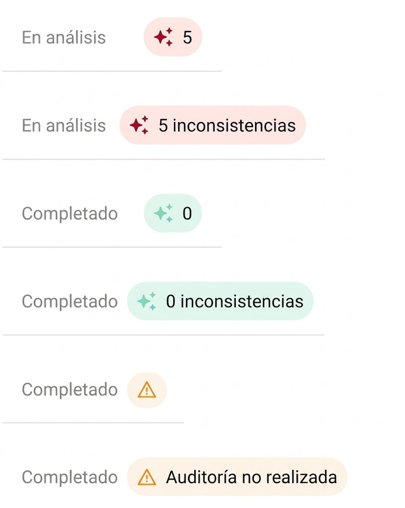 - Check Verde (0): Ninguna inconsistencia encontrada.