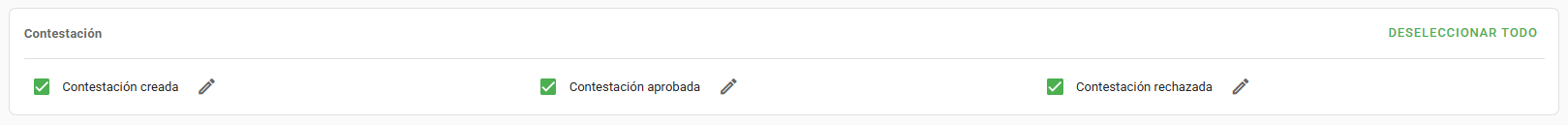 - Contestación reprobada: Informa a los interesados cuando la Contestación es rechazada.