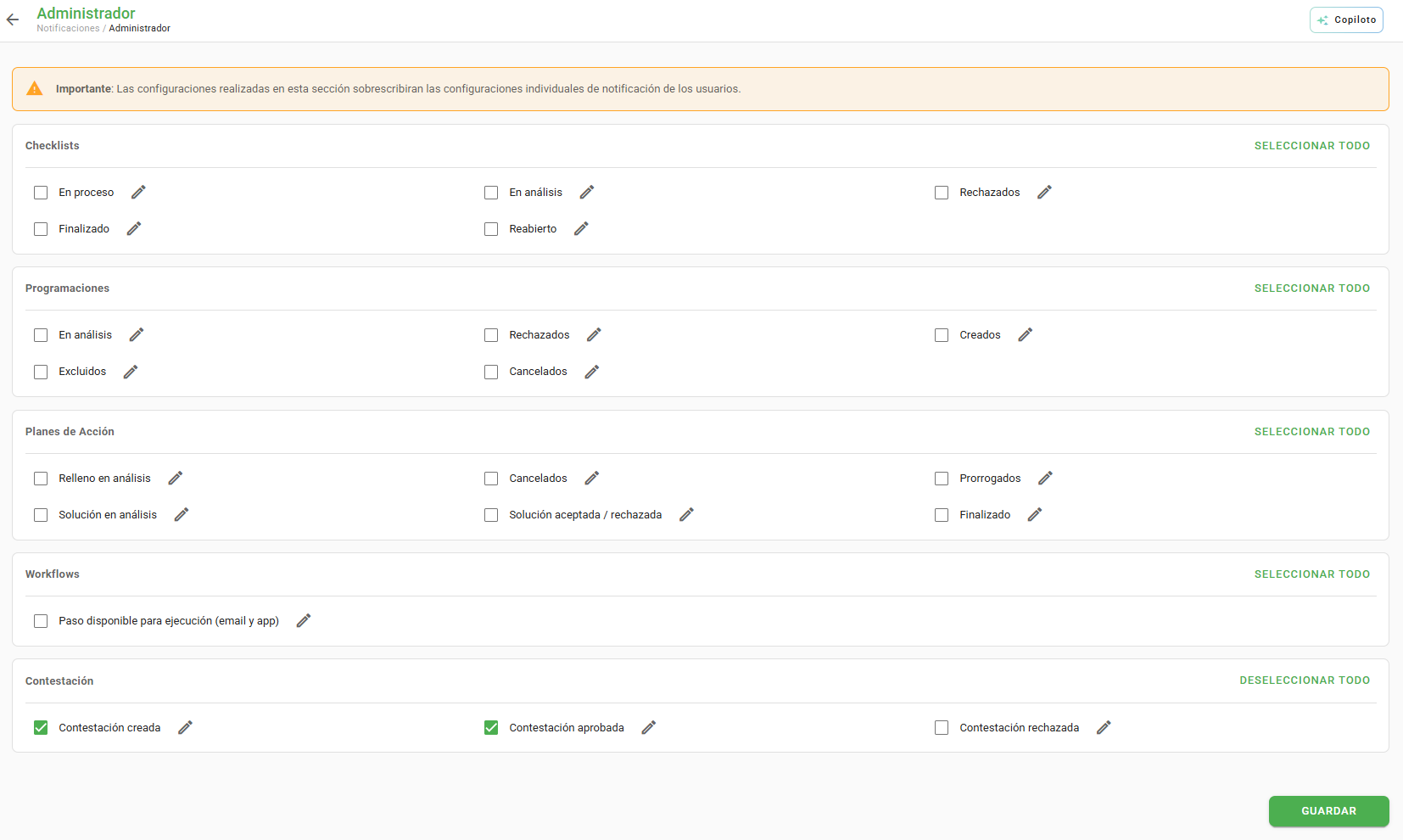 Las notificaciones tienen como objetivo optimizar la comunicación entre quien aplica el Checklist y quien aprueba las Contestaciones.