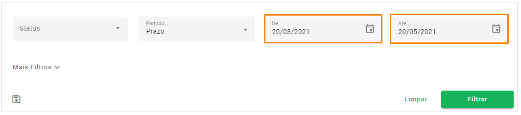 Em seguida, você pode escolher a data inicial e a data final do período que pretende filtrar.