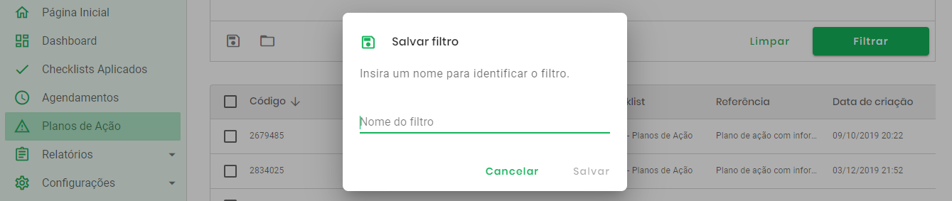 Sim, você pode salvar diversos filtros com nomes diferentes para facilitar a localização de Planos de Ação conforme sua necessidade.