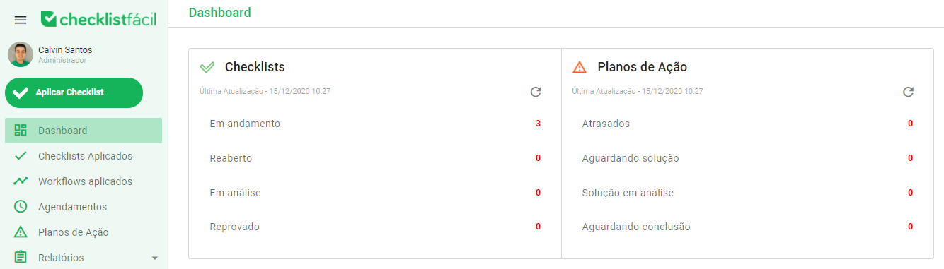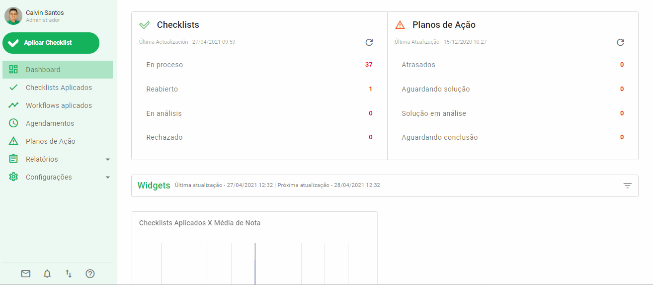 Com a ajuda de Dashboards, você consegue ter uma visualização geral sobre como estão os processos e andamentos dos checklists.