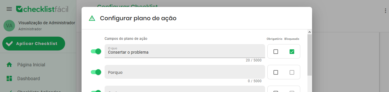 Após realizar todas as definições desejadas, não esqueça de salvar as alterações para aplicar as novas regras ao seu item de checklist.