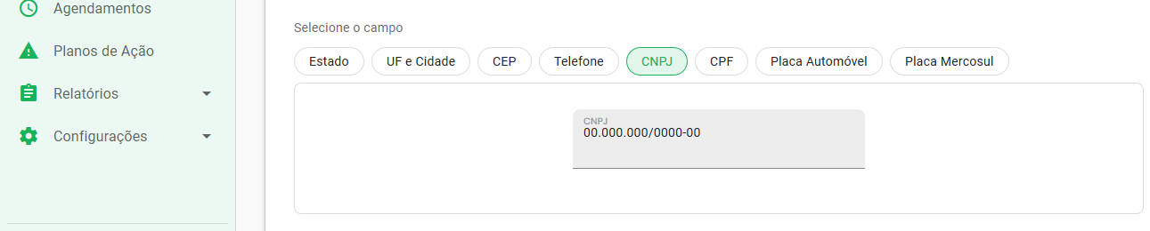 O tipo de resposta configurado como cadastro traz uma opção de preenchimento semelhante à opção anterior, porém com padrões variados definidos pelo sistema.
