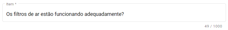 - Item: é nesse campo que você irá adicionar o item que o aplicador deverá avaliar. Exemplos: "O chão está limpo?" ou "O balcão está higienizado?", e assim por diante.