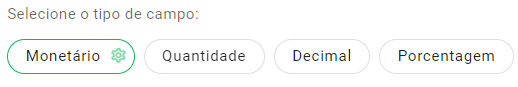 Numérico: o tipo numérico permite definir o formato em que o valor será respondido, como quantidade, valor decimal, monetário e porcentagem.
