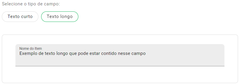 Texto: esse tipo possibilita que o item seja respondido em um campo de texto curto ou texto longo.