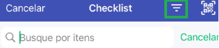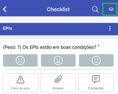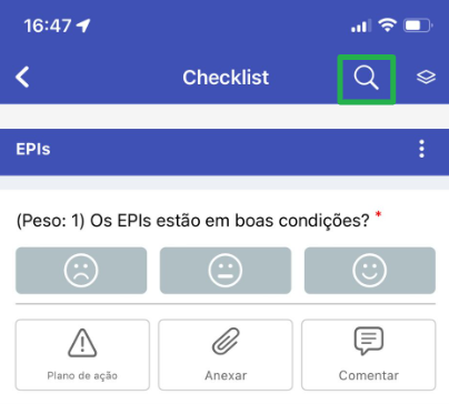 - Buscar por itens: ao clicar na lupa você pode buscar por itens específicos dentro do checklist que está sendo avaliado.