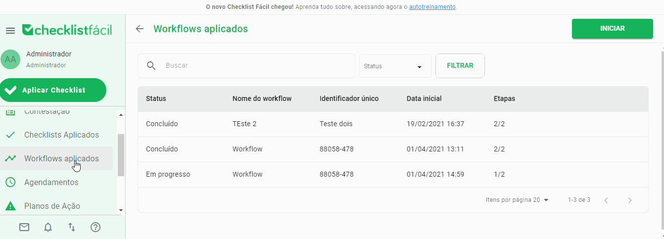 Na tela de Workflows aplicados, é possível exportar suas aplicações de forma simples.