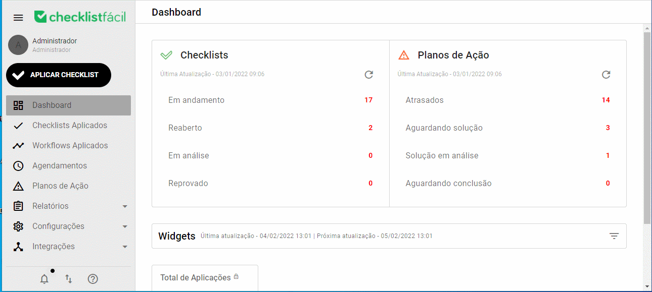 A configuração de modelo afeta apenas a criação de novos questionários. Checklists que já existiam antes da definição do modelo permanecem com suas configurações originais inalteradas.