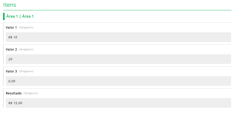 Na tela de visualização, os itens que possuem cálculo são identificados pelo ícone de função FX. Ao passar o mouse sobre este ícone, o sistema exibirá a fórmula ou conta que está configurada para aquele item.