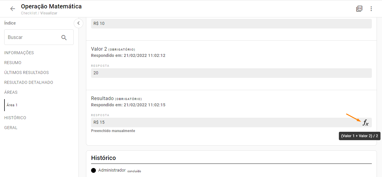 - Detalhes do cálculo (Ícone FX)