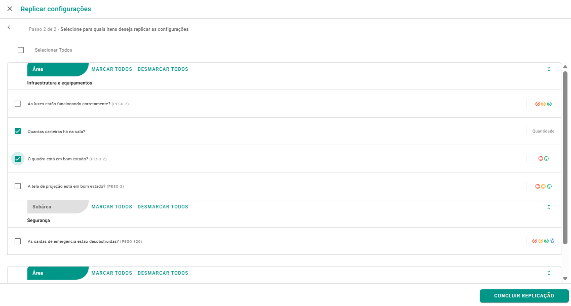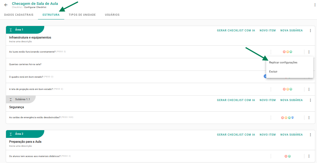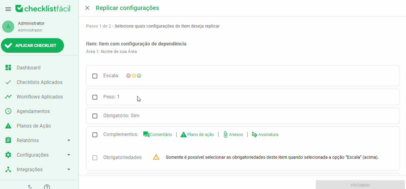 1. Posso replicar configurações de um checklist para outro checklist diferente?