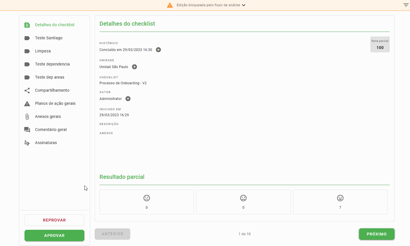 1. O aprovador consegue finalizar a análise sem assinar?