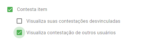 Também é possível permitir que o usuário visualize suas contestações desvinculadas e as de outros usuários.