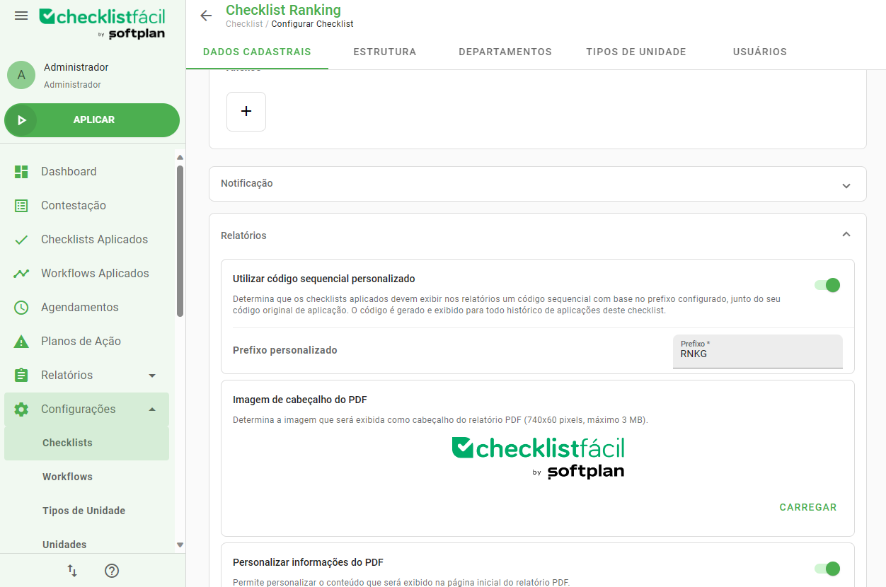 Para configurar a etiqueta, basta navegar para as configurações do seu checklist desejado, seguindo o caminho: Configurações > Checklists > Editar.