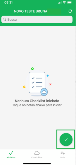Caso você queira verificar os checklists iniciados, mas que ainda não foram finalizados, clique no botão à esquerda, Iniciados.