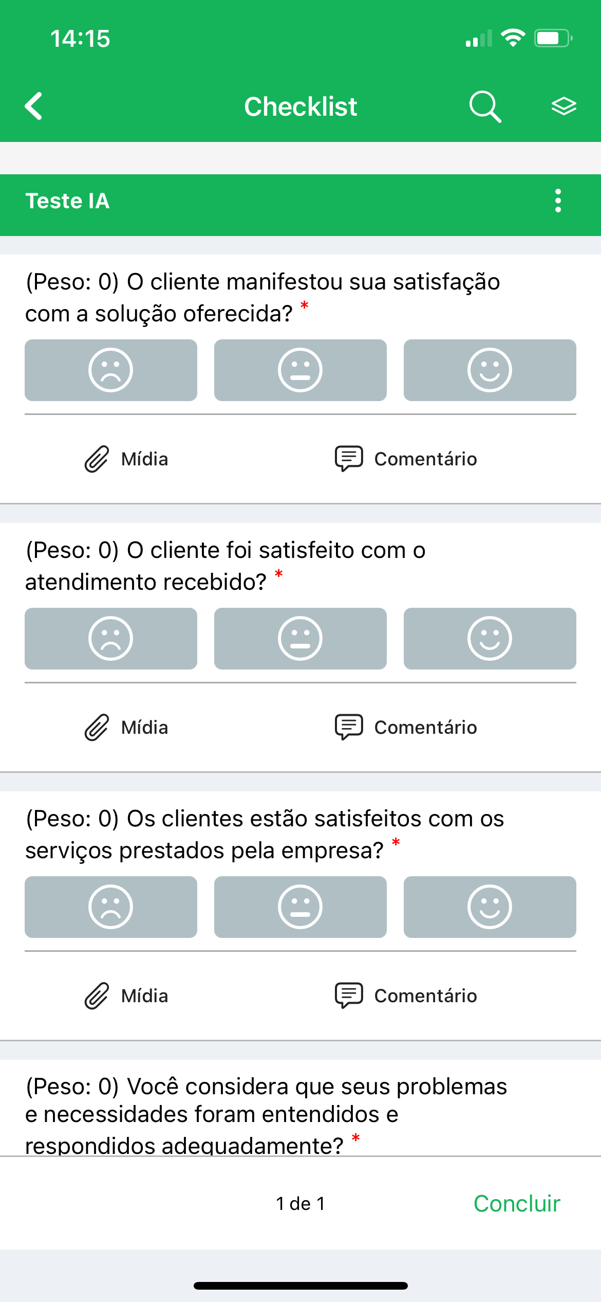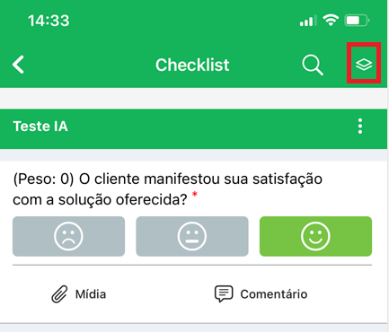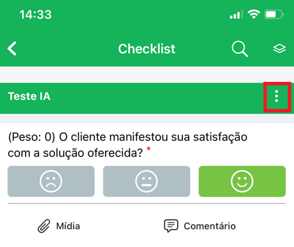 Desta forma, pode ser que você precise adicionar um comentário sobre aquele item específico, ou, caso tenha sido detectada alguma não conformidade, pode ser obrigatório o envio de uma mídia (uma foto, vídeo ou um arquivo).
