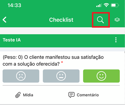 - Buscar por itens: ao clicar na lupa você pode buscar por itens específicos dentro do checklist que está sendo avaliado.
