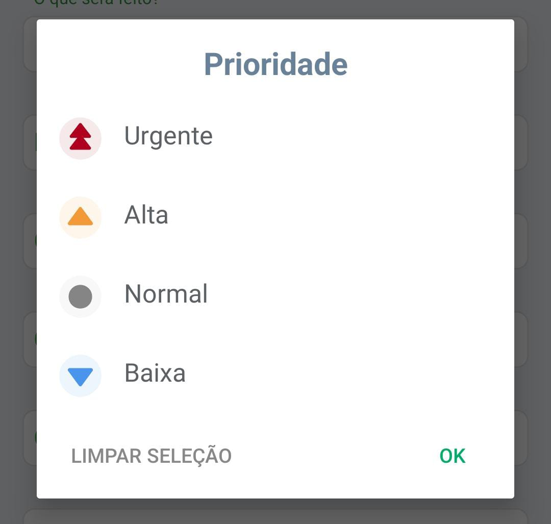 - Prioridade: Classifique como Normal, Baixo, Alto ou Urgente (obrigatório – padrão "Normal").