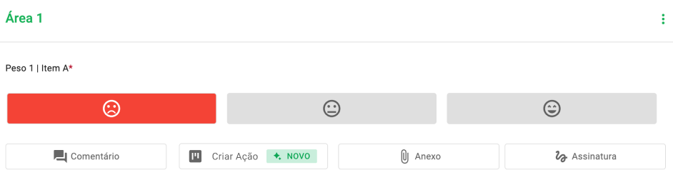 → Atenção: Para criar uma ação, é necessário que, no modelo de checklist, o item esteja configurado com o complemento "Ação" habilitado.