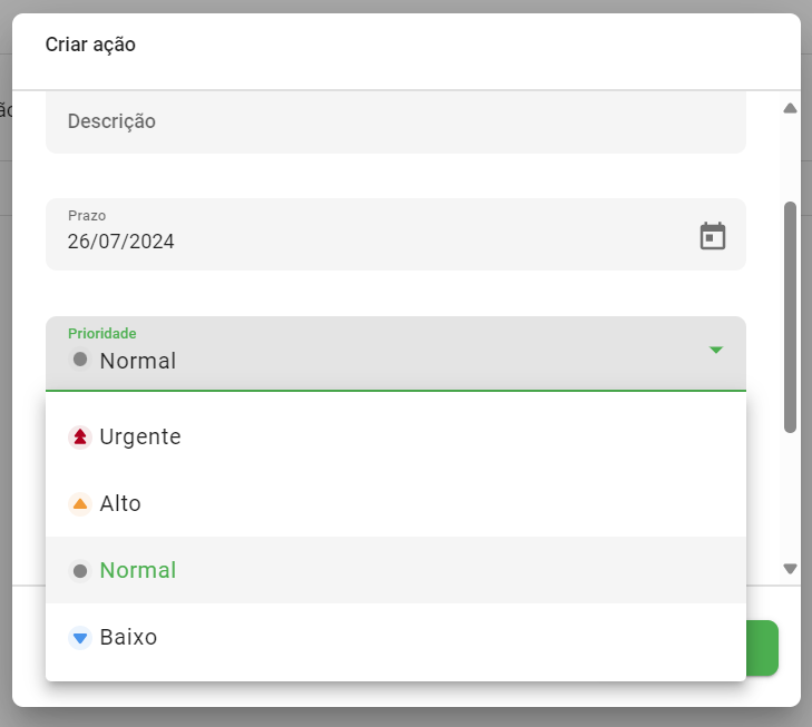 - Prioridade: Nível de urgência da ação.