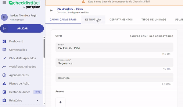 Será aberta a página de edição, semelhante à criação de checklists comuns: