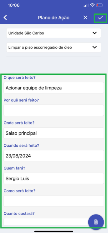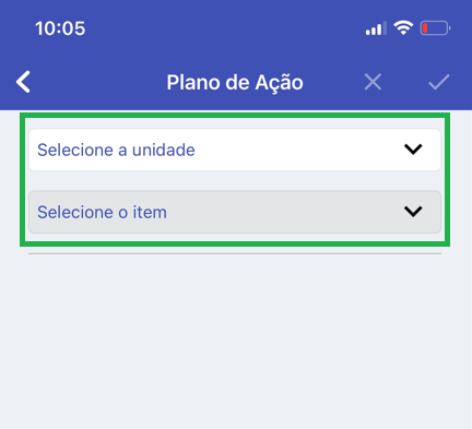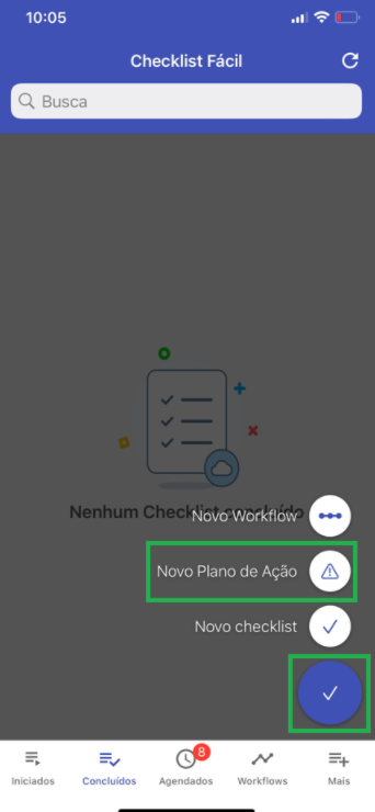 1. No app, clique no botão Aplicar e selecione Novo Plano de Ação: