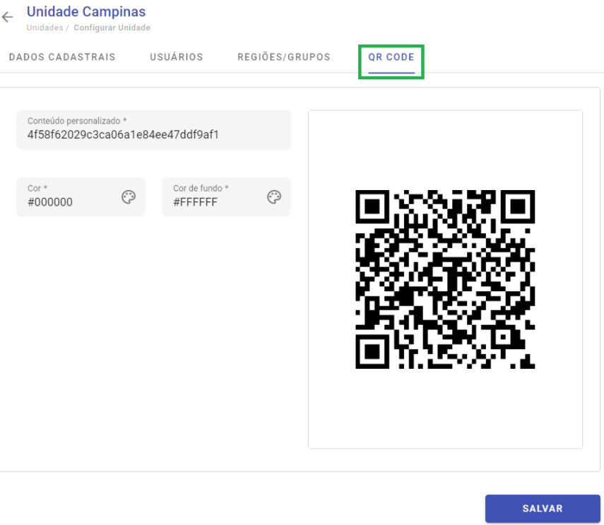 Dica: Não é necessário criar uma nova unidade para inserir um QR Code.