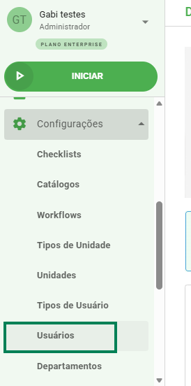 Passo 1: No menu lateral esquerdo, clique em Configurações e, depois, em Usuários.