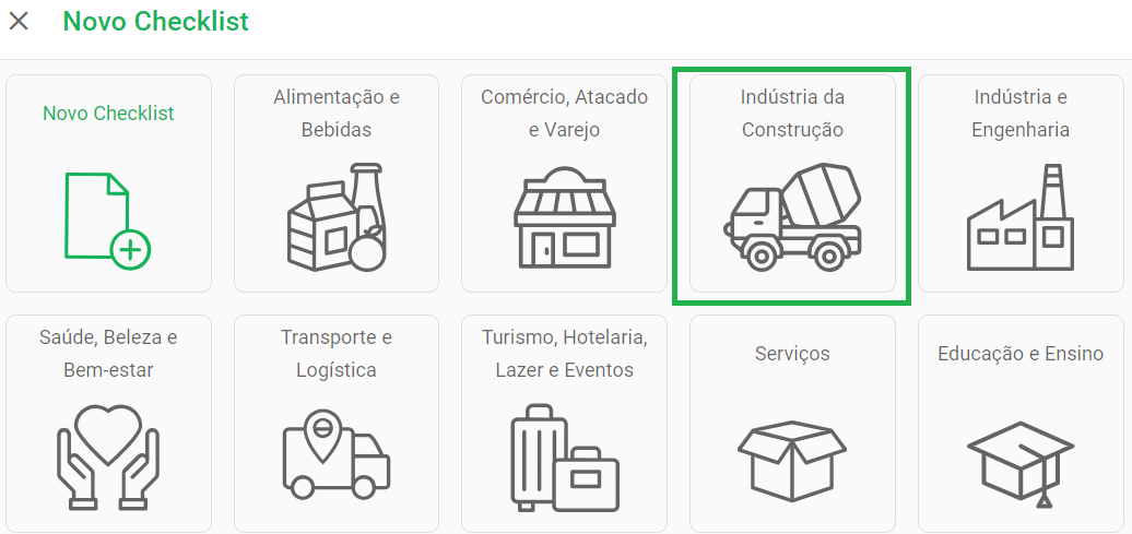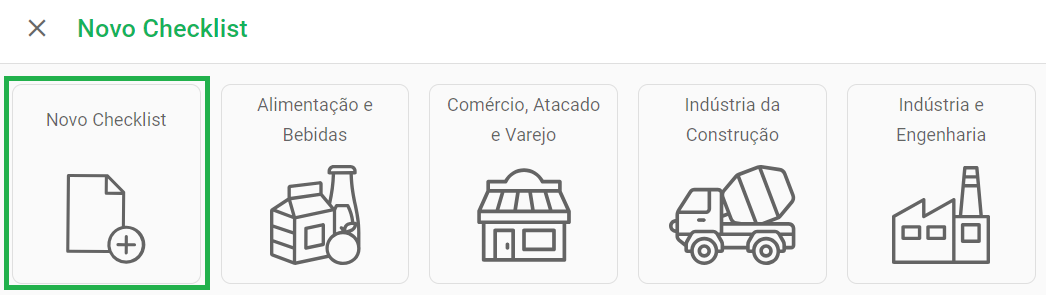 - (4) Criar checklist a partir de um modelo: permite reaproveitar modelos de checklists existentes (ex: Indústria da Construção).