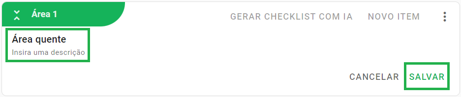Escolha um nome para a área, uma descrição (opcional) e clique em Salvar.