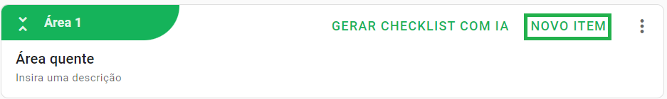 Passo 2: Com a área criada, adicione os itens de avaliação clicando em Novo item.