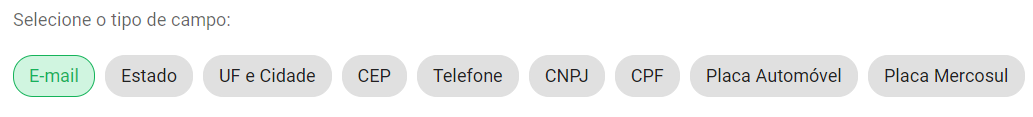 - Tipo Cadastro: Opções como e-mail, placa, estado, etc.