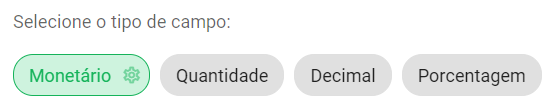 - Tipo Numérico: Quantidade, decimal, monetário, porcentagem.