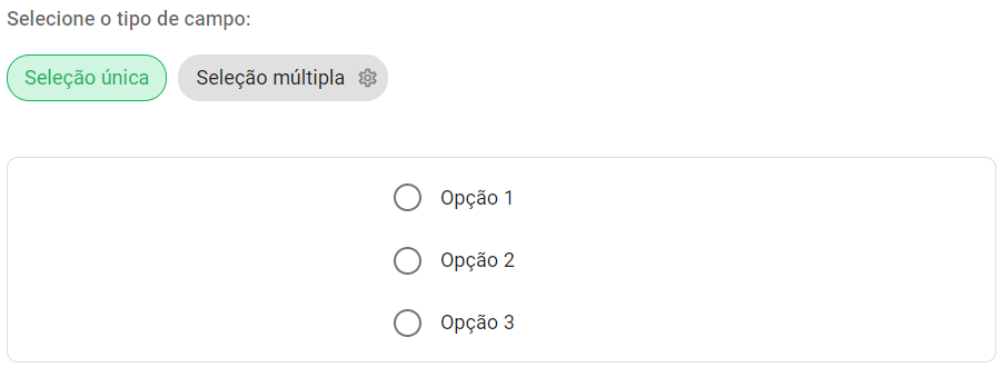 - Tipo Lista de Seleção: Lista personalizada (seleção única ou múltipla). Permite definir peso.