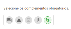 Nota sobre a disponibilidade: A disponibilidade dos itens para obrigatoriedade depende da ativação prévia dos complementos no item. Eles seguem o mesmo padrão visual: verde para habilitado/obrigatório e cinza para desabilitado/não obrigatório.