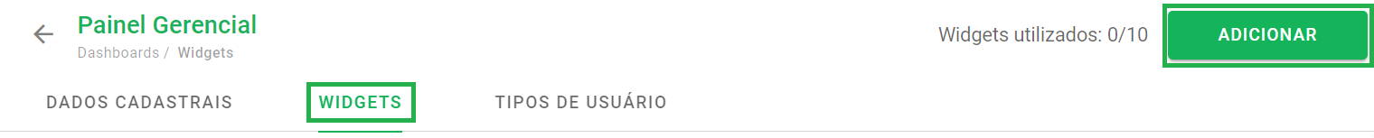Cada dashboard permite a inserção de até 10 widgets personalizados.
