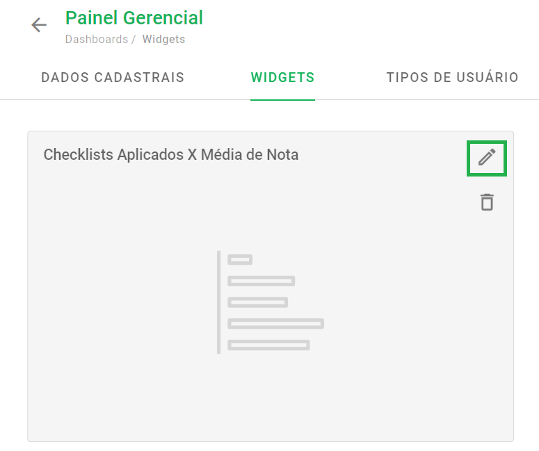 ℹ️ Observação: As configurações feitas aqui influenciarão a exibição do Widget na tela inicial de Dashboards.