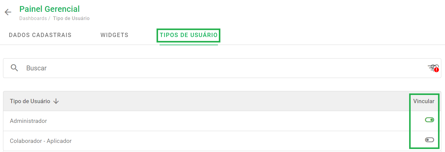 - Como vincular um dashboard a um tipo de usuário?
