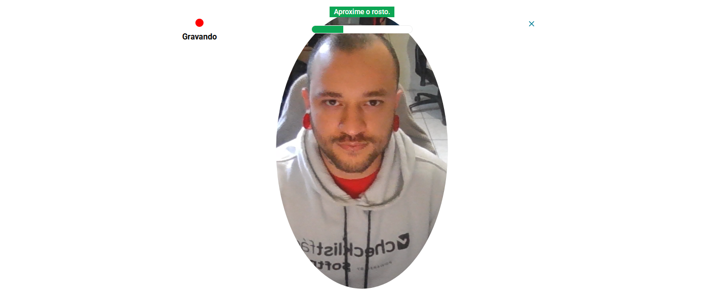 Durante o registro, o sistema irá orientar o posicionamento do rosto do usuário em relação à câmera. Quando a posição for a ideal, o sistema orientará o usuário a ficar parado para realizar a captura.