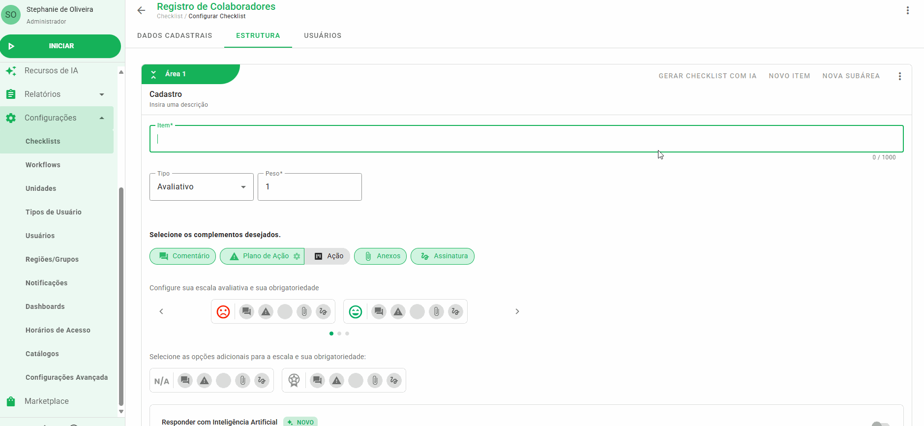 - Acesse Configurações > Checklists e entre na edição da estrutura do checklist desejado;