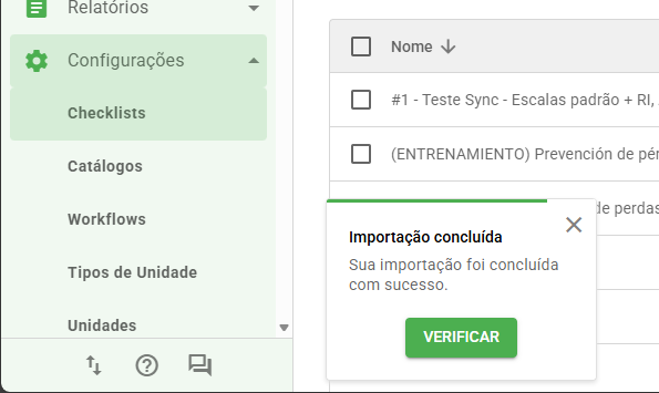 Também é possível realizar a importação clicando nos três pontinhos no canto superior direito da tela de configuração de checklists.