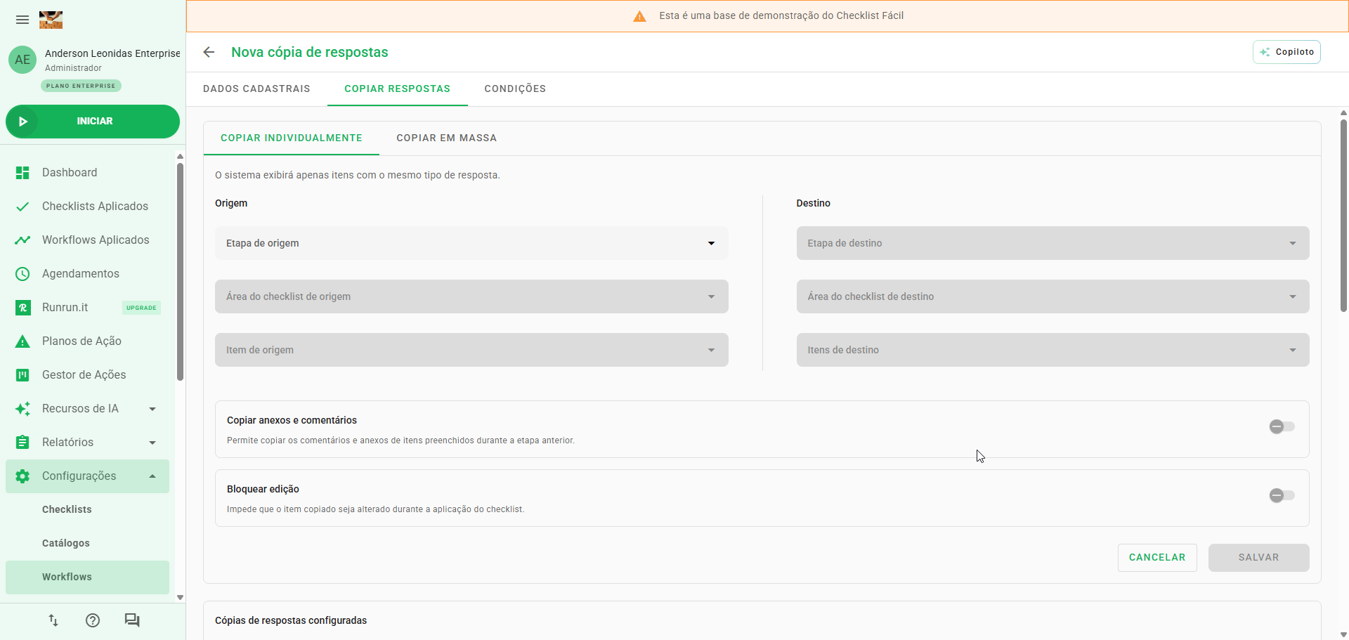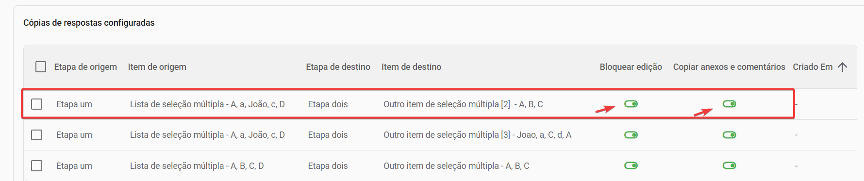 Essa nova versão traz uma experiência centralizada e mais inteligente, permitindo configurar cópias de respostas entre diferentes etapas do workflow de forma mais rápida e segura.