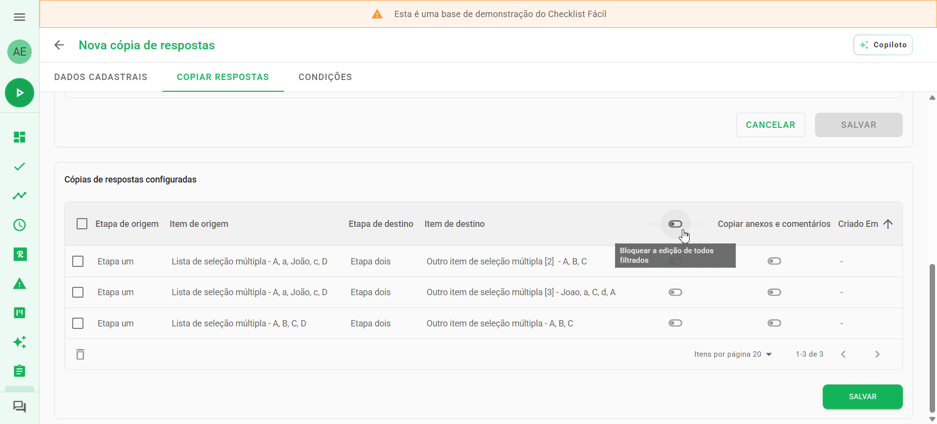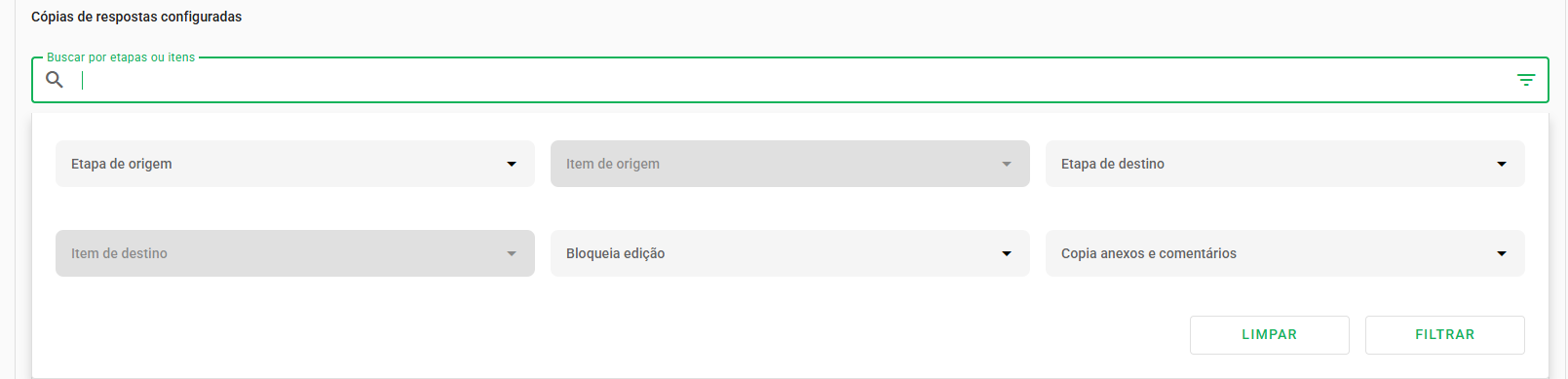 Essa aba reúne todas as configurações relacionadas à cópia automática de respostas entre etapas.