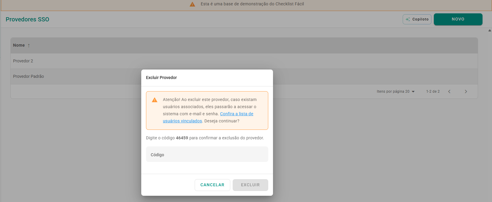 Exclusão: A exclusão é uma ação permanente e irreversível. Assim como na desativação, os usuários migram para o acesso via e-mail e senha, mas o provedor deixa de existir na plataforma.